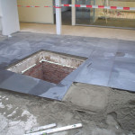 een natuursteen vloer ( Mustang Leisteen 60×60 ) aangebracht.