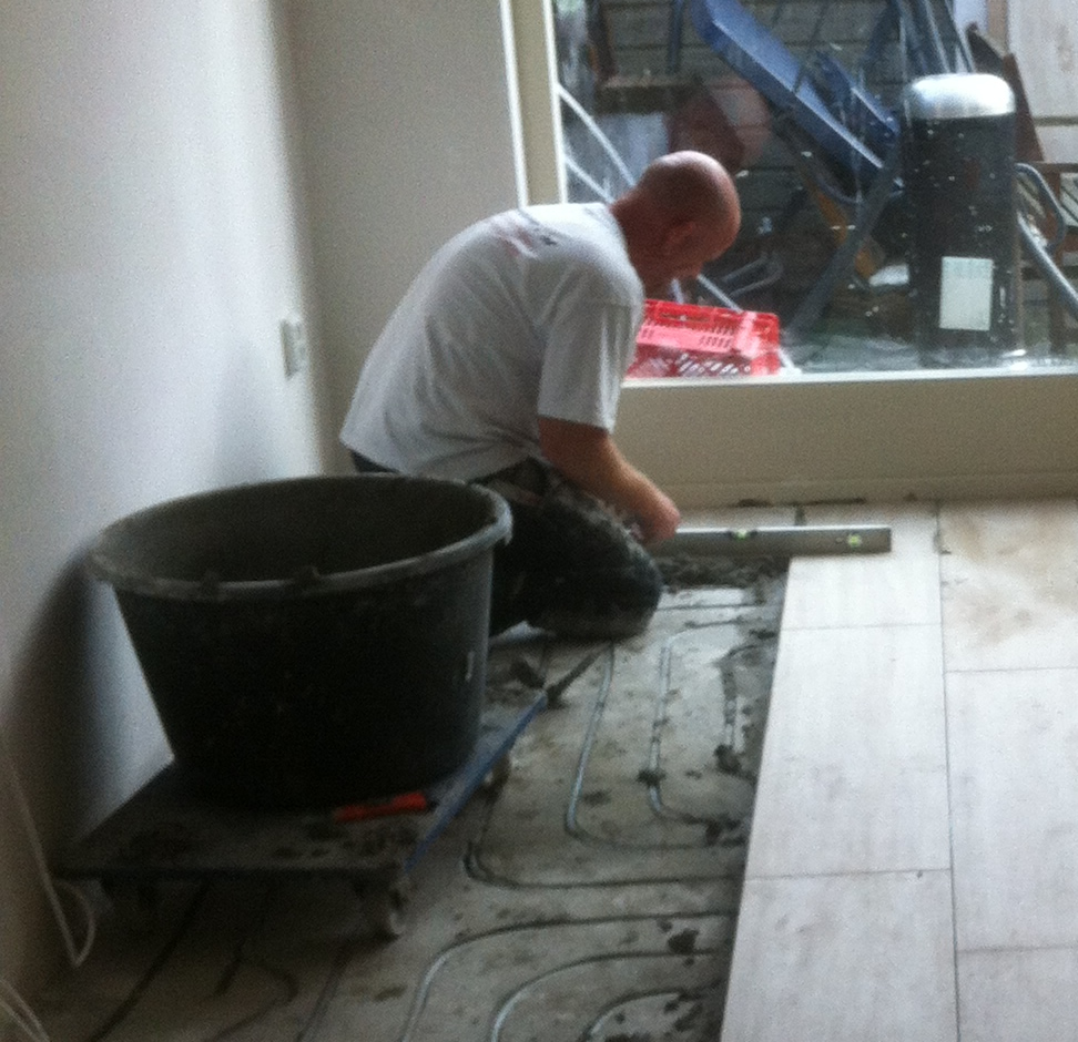 Wij leggen vloertegels met diverse verwerkingstechnieken zoals het leggen van vloertegels in de specie , in de mortel of het lijmen van vloertegels.